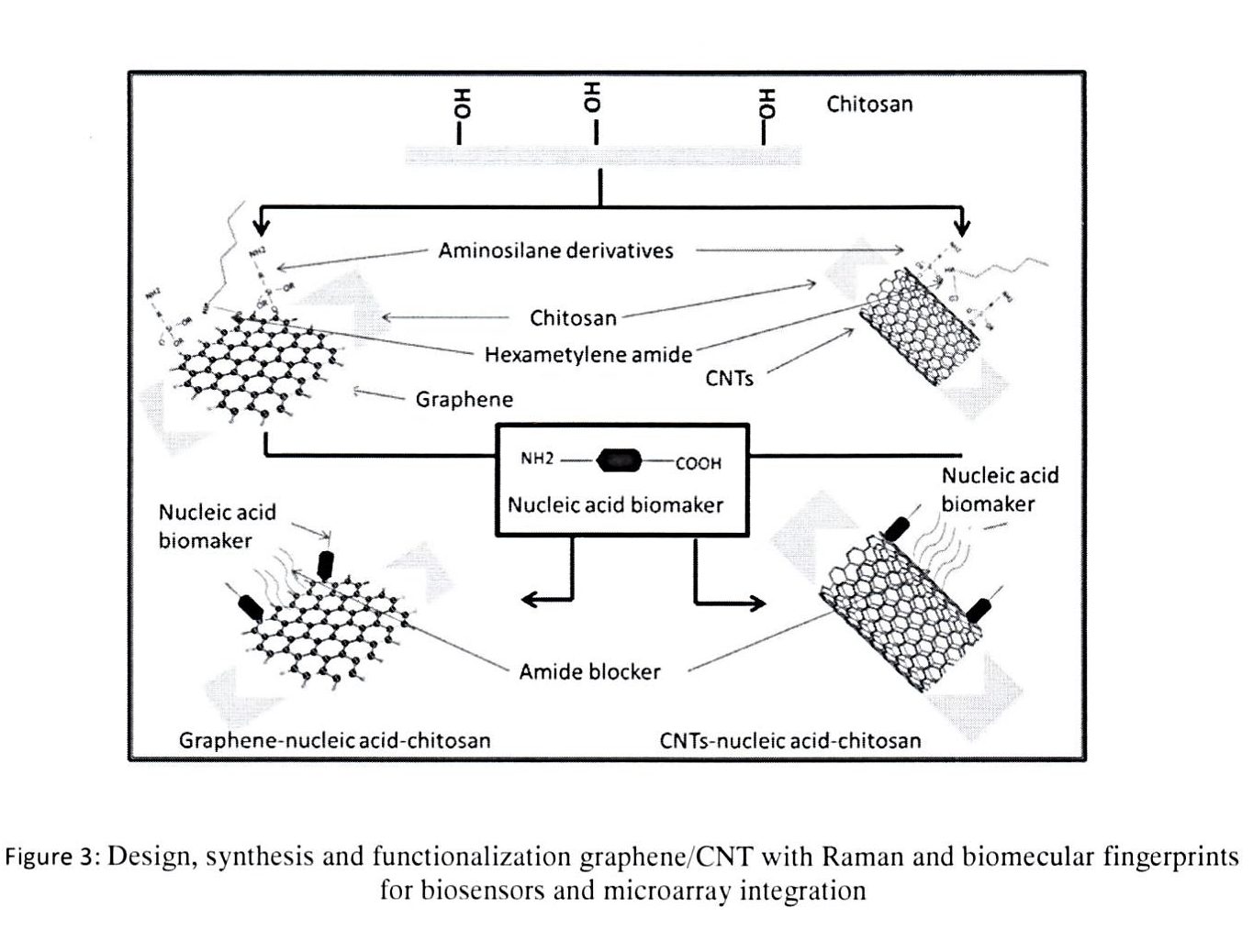 Functionalize of QD and Au@IONP and Graphene/CNT with Biomolecular Fingerprints for DNA and RNA detection.